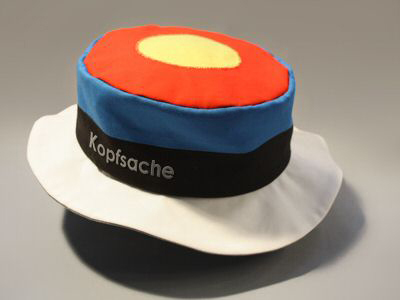 Die "Bogenmütze" ist ein Sonnenhut für Bogenschützen in den typischen Farben der Zielscheiben für das Bogenschießen.